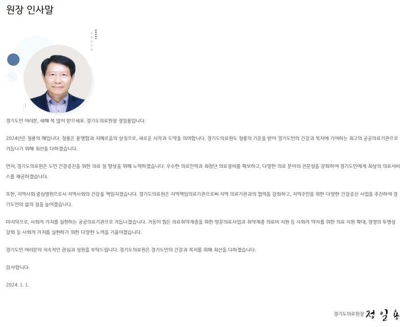 비전: 경기도민의 건강한 삶을 책임지는 최고의 공공의료기관