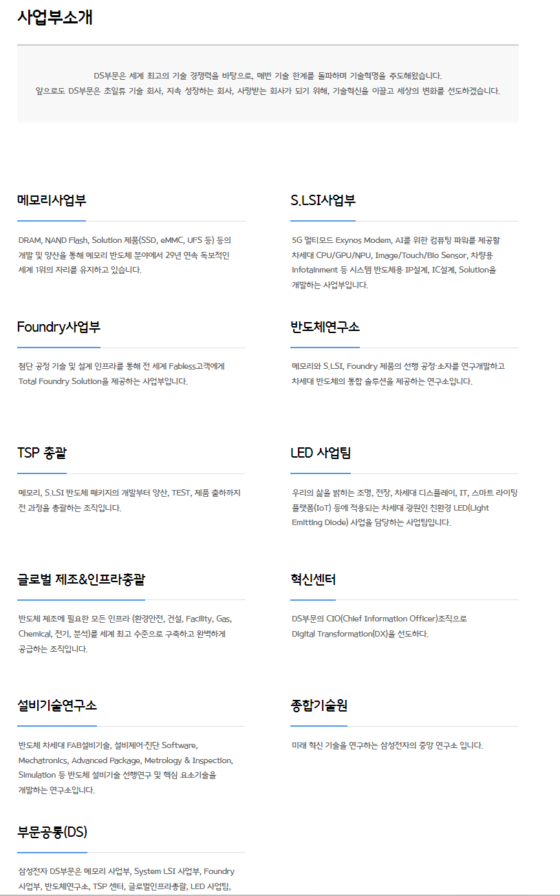 삼성전자는 대한민국을 대표하는 글로벌 기업이죠. 전자 제품, IT 모바일, 디바이스 솔루션 등 다양한 분야에서 혁신을 이끌고 있습니다. 특히, 반도체 사업은 세계 시장을 선도하며 대한민국의 경제 성장에 큰 기여를 하고 있습니다.