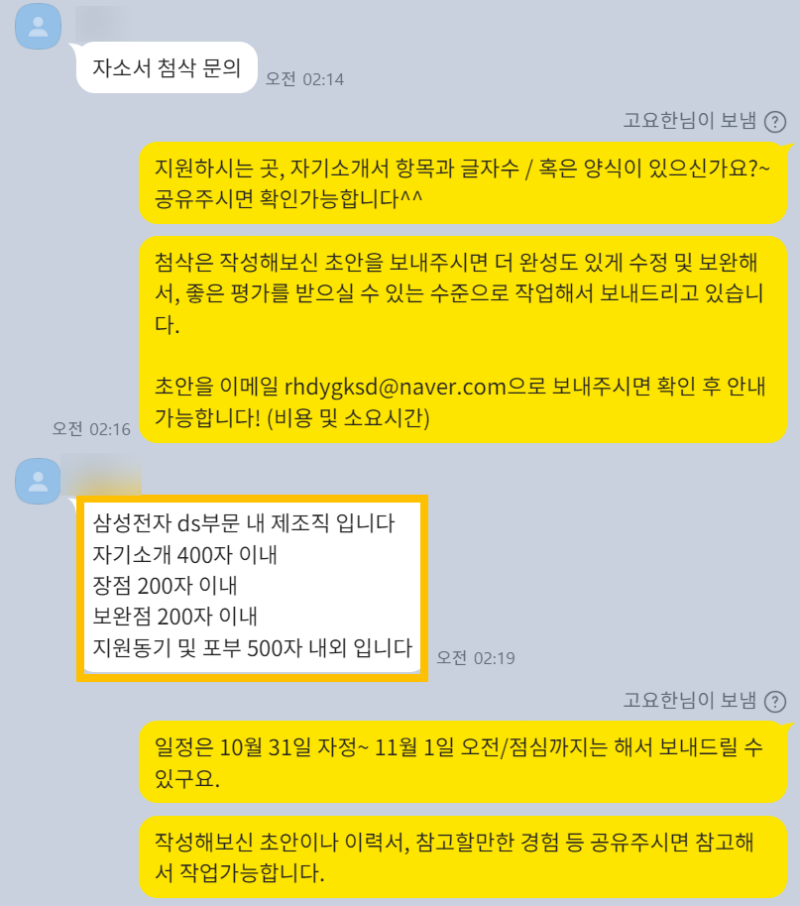 ✨ 모든 기업 자소서 첨삭, 작성 대행, 대필 가능합니다!
