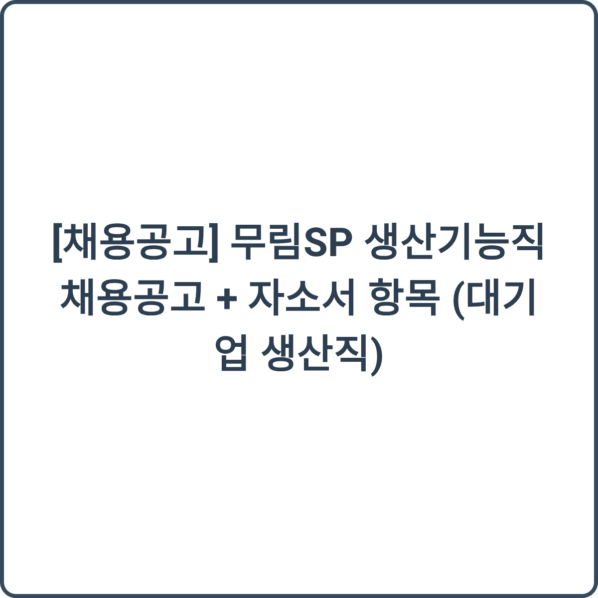 #무림SP #생산기능직채용 #대기업생산직 #자기소개서작성 #자소서첨삭 #취업성공 #친환경제지 #대구북구채용 #신입채용 #취업팁