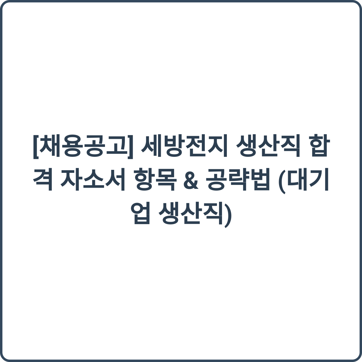 #세방전지 #생산직채용 #자기소개서작성 #대기업생산직 #자소서첨삭 #취업준비 #생산직합격팁 #채용공고 #취업성공 #자소서공략법
