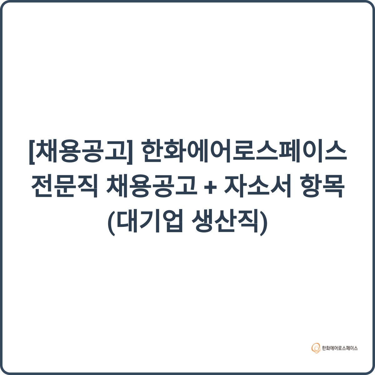 #한화에어로스페이스 #대기업채용 #생산직채용 #자소서작성팁 #취업성공 #면접준비 #방산산업 #우주산업 #미래모빌리티 #취업노하우