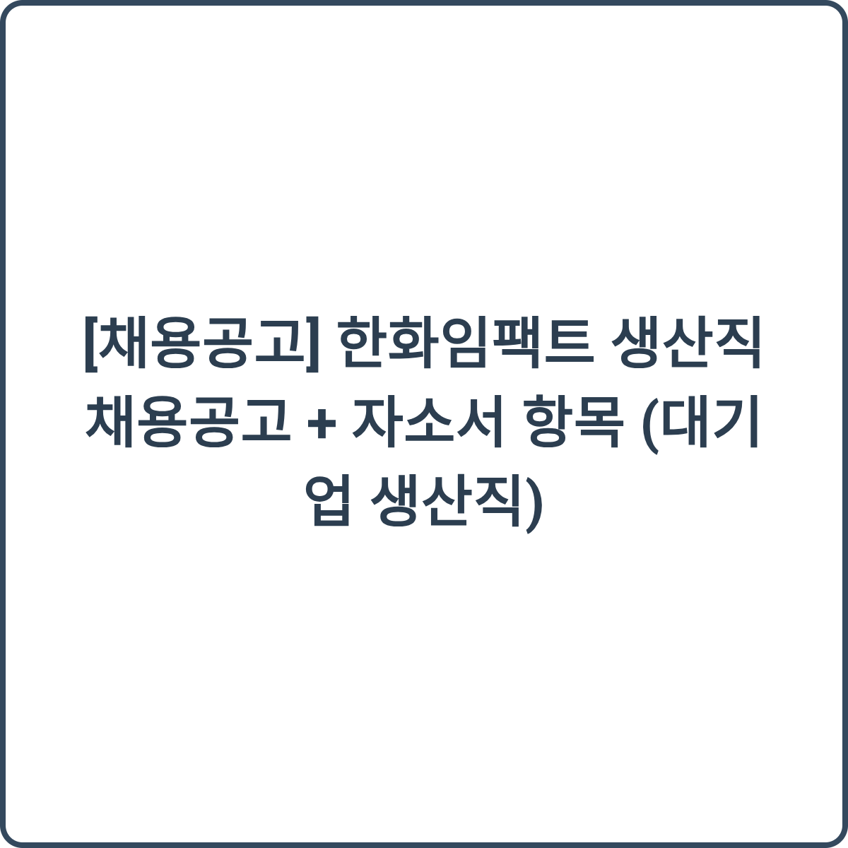 [채용공고] 한화임팩트 생산직 채용공고 + 자소서 항목 (대기업 생산직)