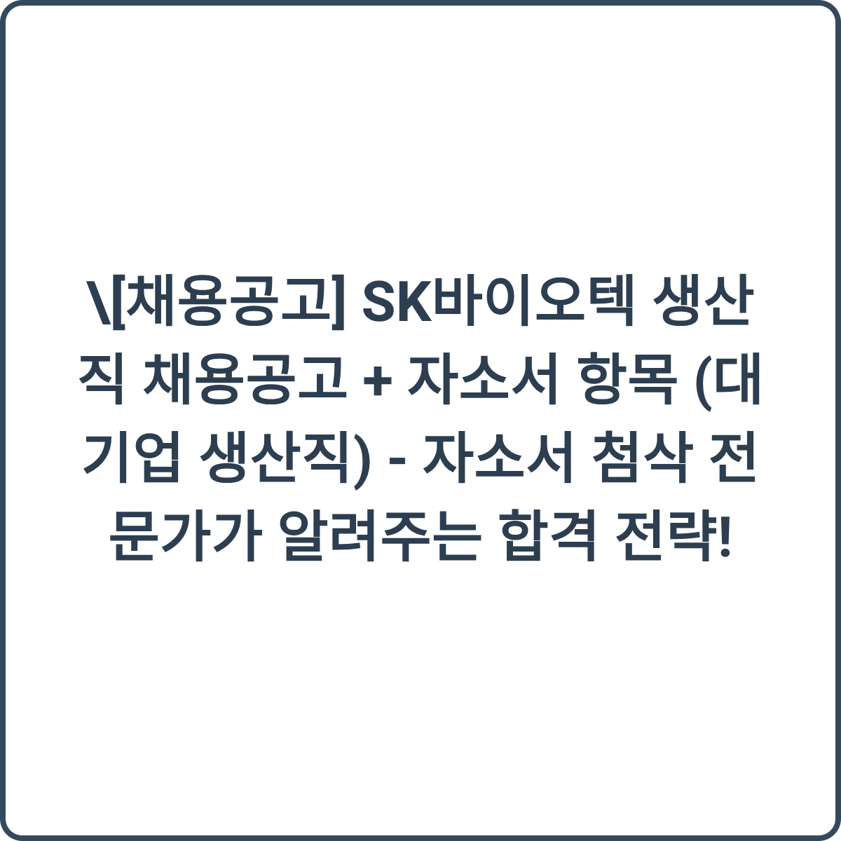 #SK바이오텍채용 #생산직채용 #대기업생산직 #자기소개서작성법 #자소서첨삭 #취업성공전략 #의약품생산직 #취업팁 #생산직면접 #SK그룹채용
