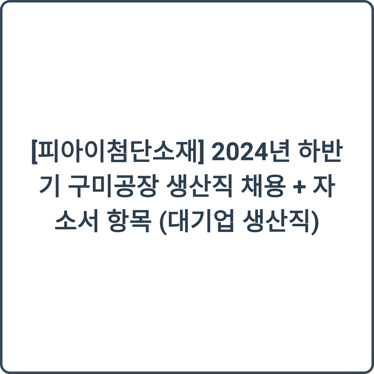 [피아이첨단소재] 2024년 하반기 구미공장 생산직 채용 + 자소서 항목 (대기업 생산직)