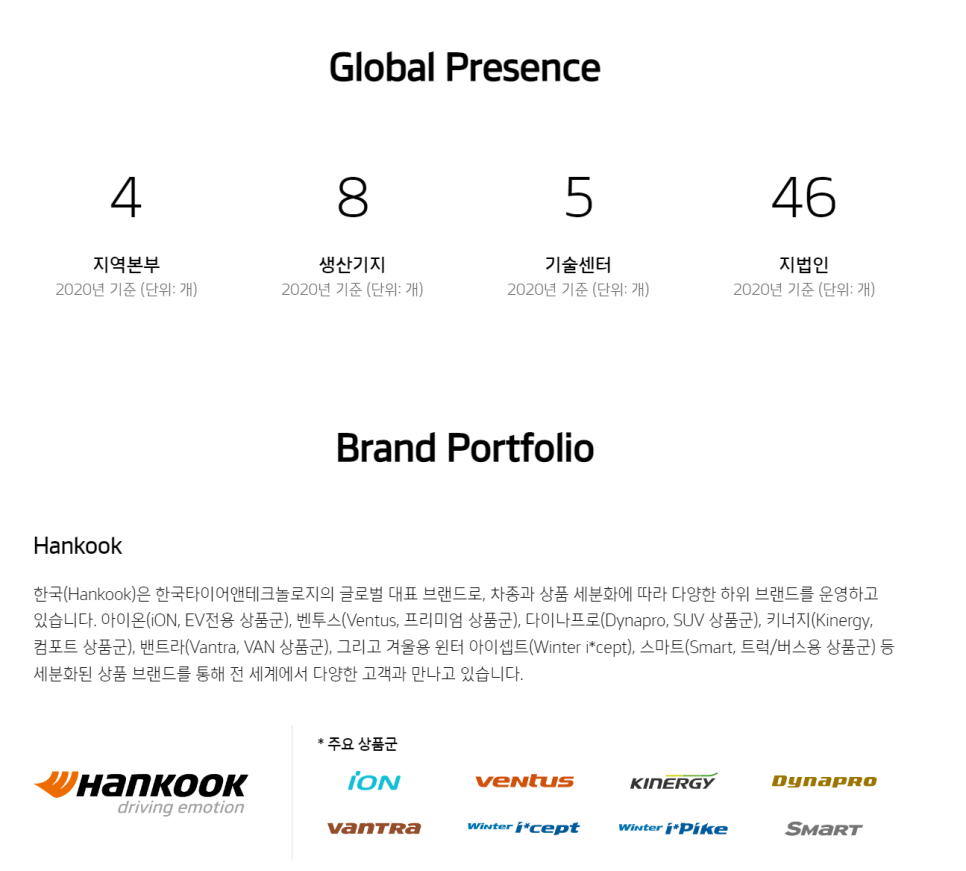주요 사업: 타이어 제조 및 판매, 모빌리티 솔루션 개발