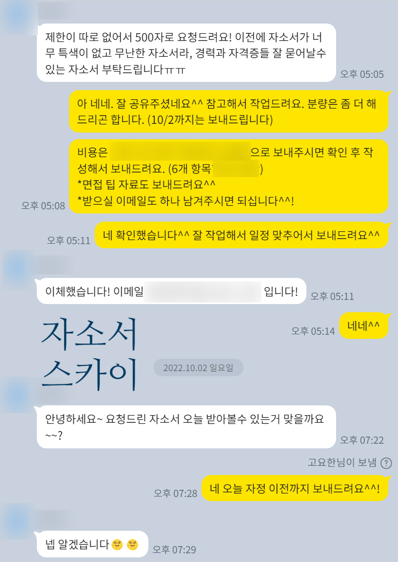 1. 자기소개서 첨삭 및 대행