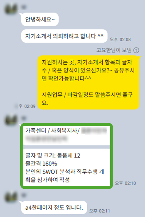 가족센터 자소서 합격 첨삭후기!