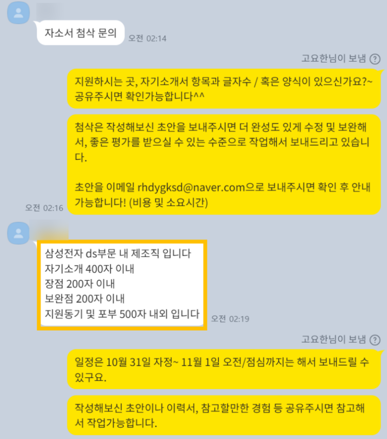 삼성전자 자소서 항목 첨삭 합격후기