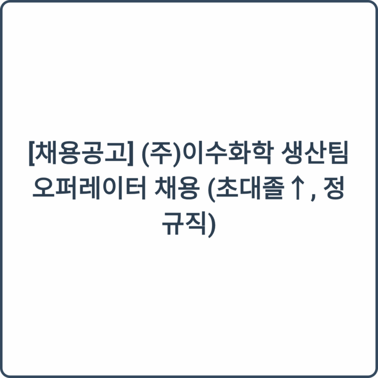 [채용공고] (주)이수화학 생산팀 오퍼레이터 채용 (초대졸↑, 정규직)