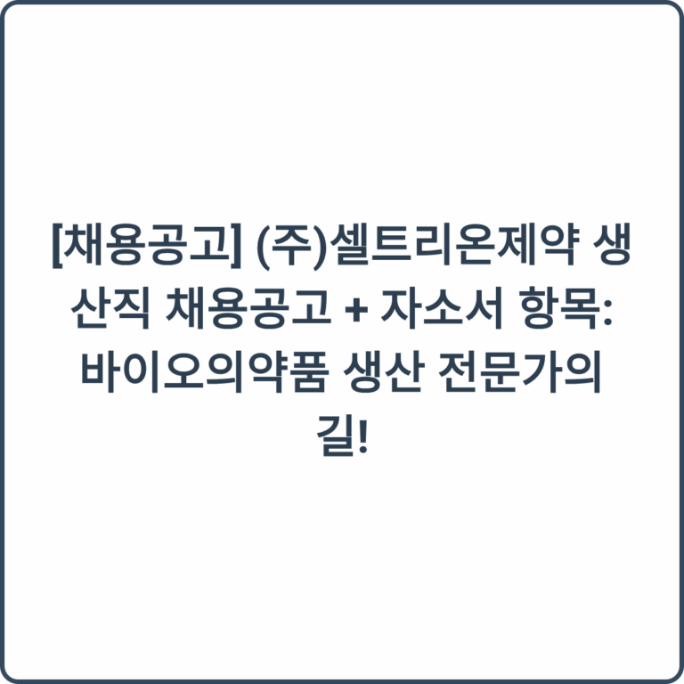 [채용공고] 셀트리온 생산직 채용공고 + 자소서 항목 (대기업 생산직)