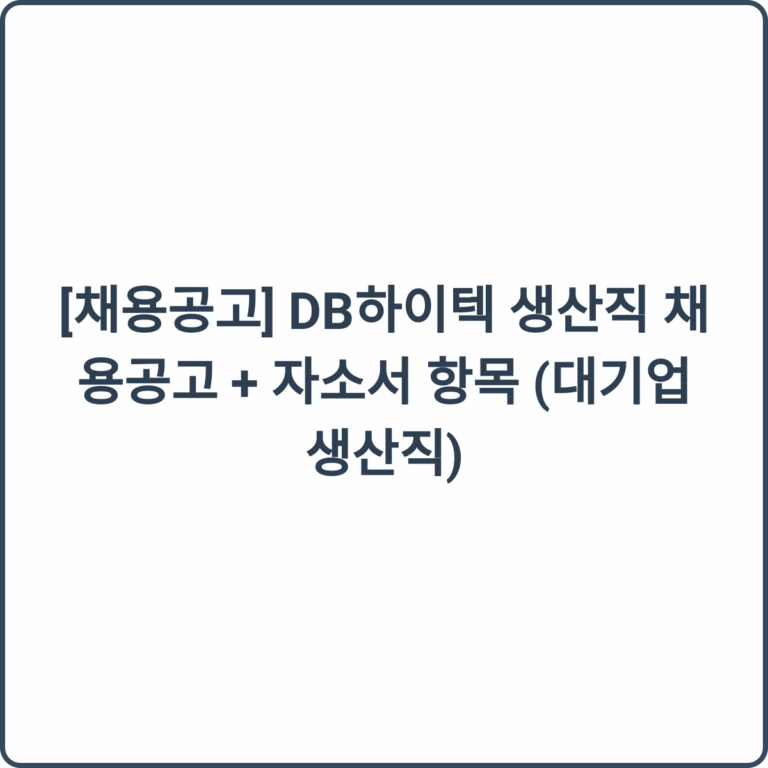 [채용공고] DB하이텍 생산직 채용공고 + 자소서 항목 (대기업 생산직)