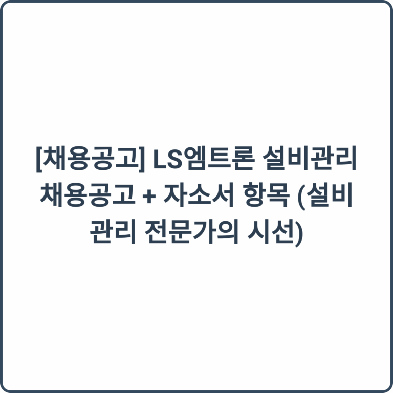 [채용공고] LS엠트론 설비관리 채용공고 + 자소서 항목 (설비관리 전문가의 시선)